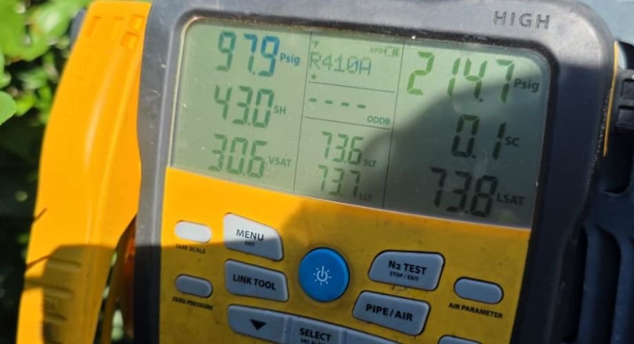 Not always. Slightly low pressure can be influenced by several factors, including load conditions, coil cleanliness, and system design. In this Riverview visit, we performed a refrigerant leak search and did not find any visible or detectable leaks at the time of service. Because of that, we documented the readings so they can be compared on future visits. If a leak develops or worsens, a pattern will typically start to appear.