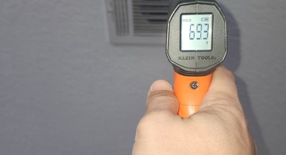 We then tested the thermostat to confirm it was responding correctly and sending the right signals to the system. A thermostat that’s out of calibration, mis-programmed, or in the wrong location can cause uneven temperatures or short cycling.