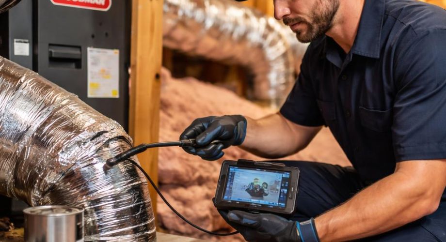We start at the vents and equipment, looking for obvious signs of trouble. A technician may notice weak air at one register, stronger airflow in another room, or a vent that has visible dust streaking around the grille. Near the air handler, we may hear a slight whistling sound from a leaky connection or see insulation that looks worn and damp-stained.
