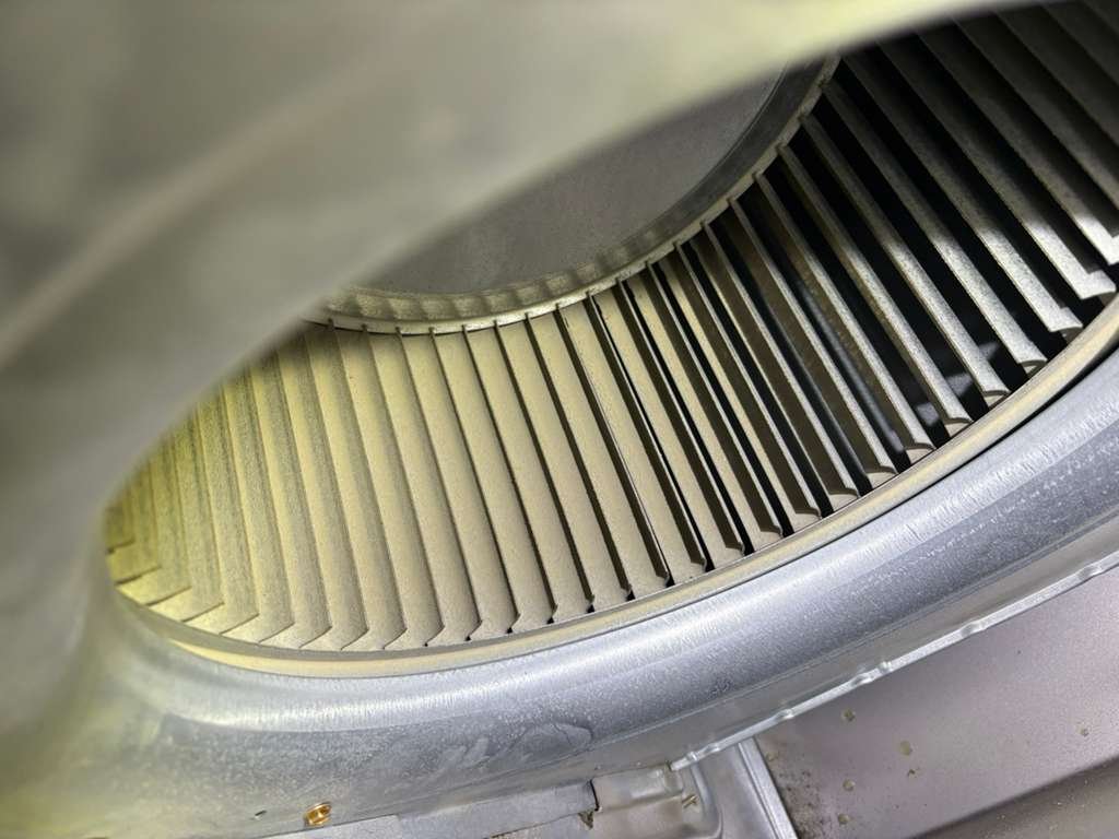 A standard tune-up includes cleaning and adjustments, but if the blower wheel has heavy buildup, removing it for a full cleaning can make a noticeable difference in airflow and dust levels. On this job, the wheel was dirty enough that a deep cleaning was well worth doing and was approved once we explained what we found.