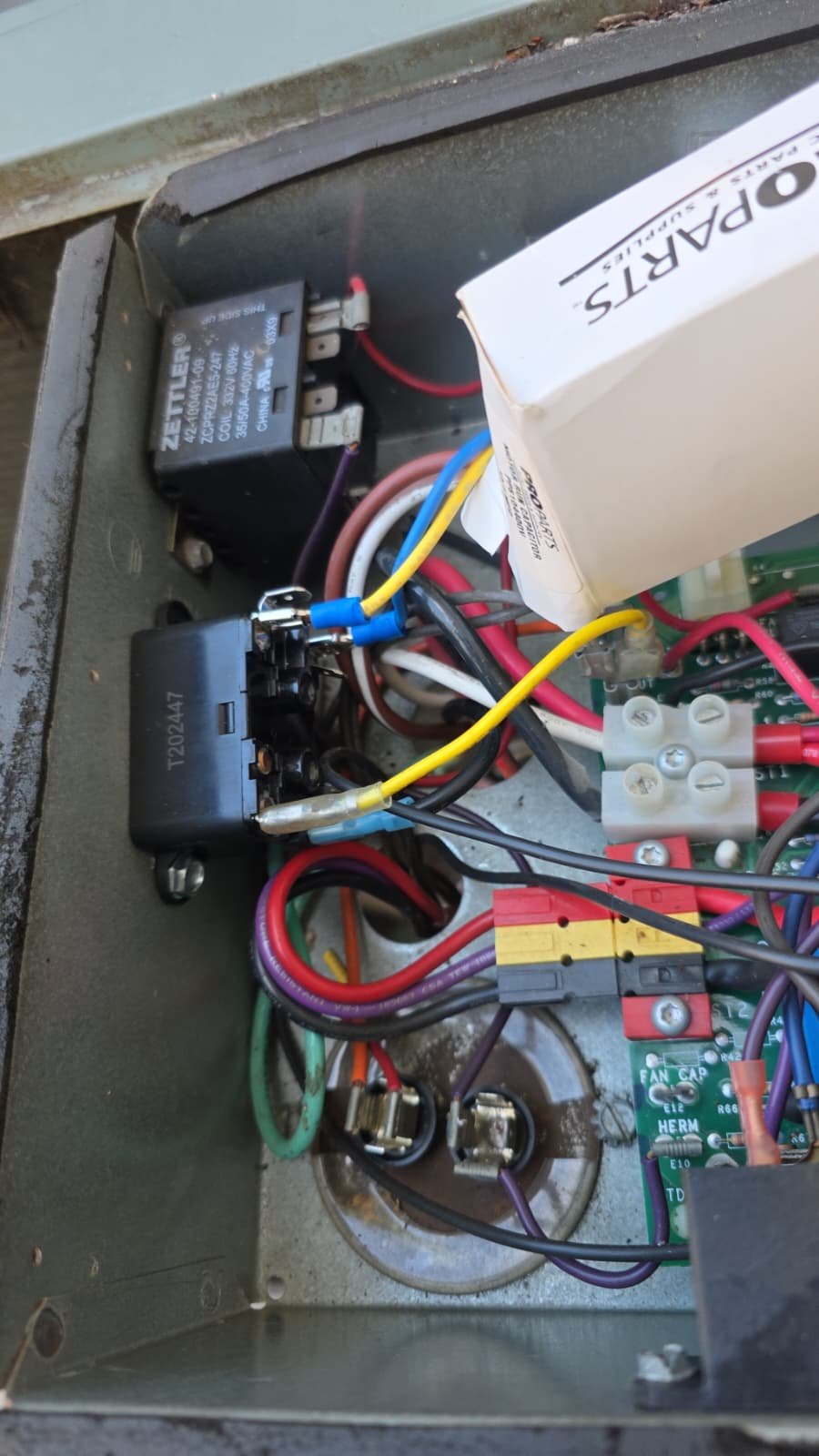 During these checks, we noted that the system behavior was not consistent and the control board was “acting up”—not always responding the way it should. To keep the home as comfortable as possible while we continued our evaluation, we temporarily bypassed part of the control logic to leave the unit operating. This was a controlled, temporary measure so the system could still function while we arranged parts and a full repair.
